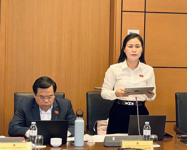 Đại biểu Đặng Thị Bảo Trinh - Đoàn Đại biểu Quốc hội TP. Đà Nẵng đề nghị cần quy định rõ biện pháp kiểm soát và ngăn chặn hành vi vi phạm trong hoạt động livestream bán hàng