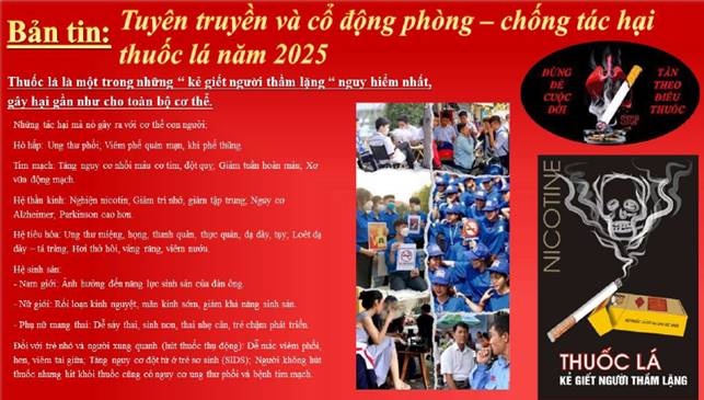 Kết luận: Thuốc lá là mối đe dọa lớn đối với sức khỏe cộng đồng, là gánh nặng đối với kinh tế và là rào cản đối với sự phát triển bền vững của đất nước. Phòng, chống tác hại của thuốc lá không chỉ là nhiệm vụ của ngành y tế mà là trách nhiệm chung của toàn xã hội.