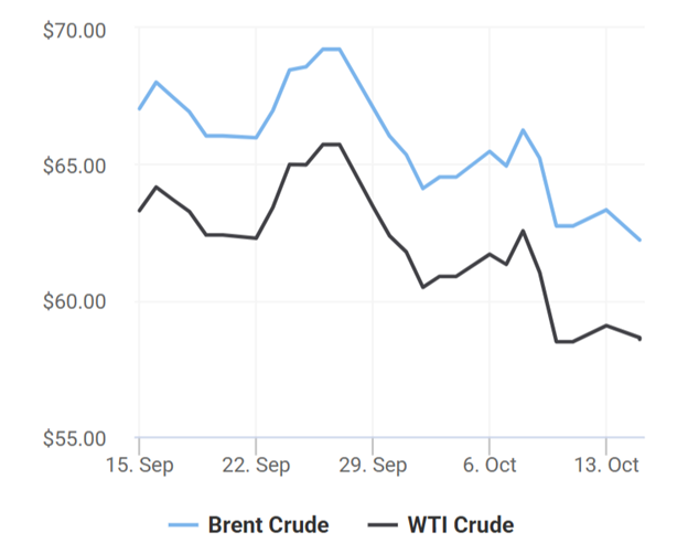Ngày 14/10, IEA cho biết thị trường dầu mỏ toàn cầu có thể đối mặt với tình trạng dư cung lên tới 4 triệu thùng/ngày vào năm tới, trong bối cảnh Tổ chức các nước xuất khẩu dầu mỏ và đồng minh (OPEC+) tăng sản lượng. Trong khi đó, nhu cầu dầu mỏ bị ảnh hưởng bởi căng thẳng thương mại leo thang giữa Mỹ và Trung Quốc trong cuối tuần qua.
