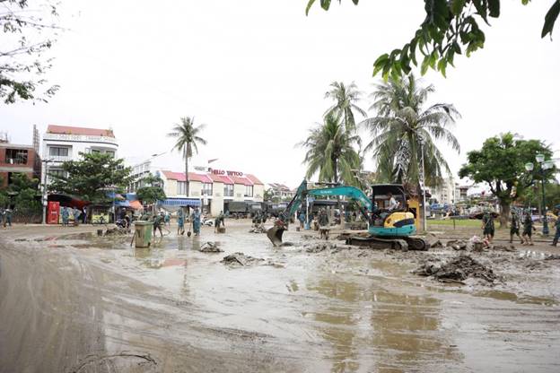 Sau gần 5 ngày chìm trong nước lũ, đến đêm 3/11, nước tại Hội An bắt đầu rút, để lại lớp bùn đất dày đặc, rác thải và mùi ẩm mốc bao trùm, gây ảnh hưởng lớn đến đời sống sinh hoạt của người dân. Ngay trong đêm, lực lượng quân đội Đà Nẵng đã khẩn trương có mặt, triển khai công tác dọn dẹp, vệ sinh môi trường và khôi phục đường phố.