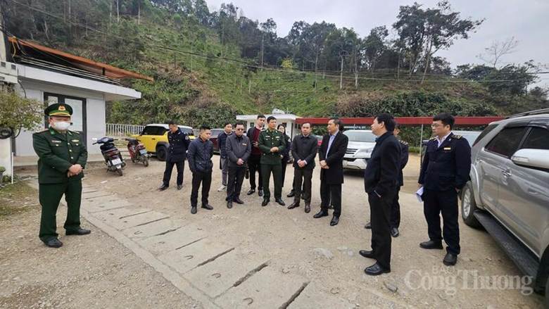 Đoàn công tác của Bộ Công Thương làm việc với các lực lượng chức năng và năm bắt tình hình thông quan hàng hóa tại cửa khẩu Tân Thanh vào ngày 2/2.