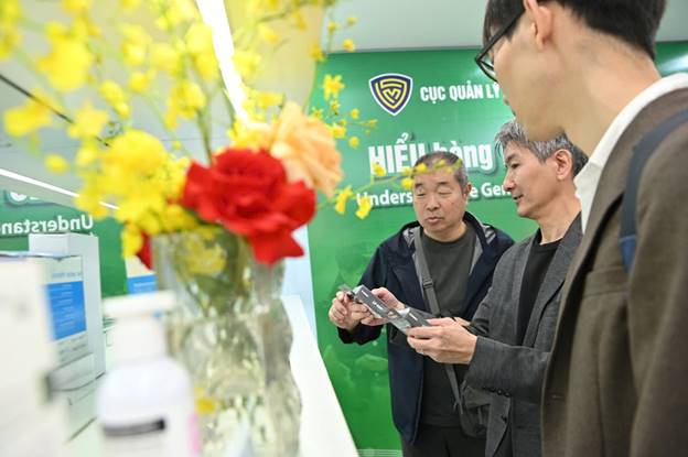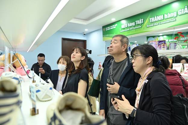 Điểm nhấn đáng chú ý là sự xuất hiện của nhiều sản phẩm do Hiệp hội Sở hữu trí tuệ Nhật Bản cung cấp phục vụ trưng bày, giới thiệu tới người tiêu dùng Việt Nam, gồm: giày thể thao Asics, vợt cầu lông Yonex, pin máy ảnh Canon, mỹ phẩm Transino, khóa kéo YKK, bugi NGK… Đây đều là những dòng sản phẩm có nhu cầu tiêu thụ lớn, dễ bị làm giả do giá trị cao. Tại phòng trưng bày, mỗi sản phẩm đều có đối chứng thật - giả rõ ràng, giúp khách tham quan trực tiếp so sánh, nhận diện từng chi tiết khác biệt, từ chất liệu, kiểu dáng đến tem nhãn một cách trực quan và sinh động.