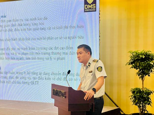 Ông Trần Việt Hùng - Trưởng phòng Nghiệp vụ QLTT báo cáo về kết quả kiểm tra, kiểm soát của lực lượng QLTT trong năm 2025