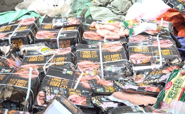 Ngày 9/10, Đội QLTT số 14, Chi cục QLTT Hà Nội phối hợp với phòng Cảnh sát kinh tế - CATP kiểm tra một kho hàng tại ngõ 16 Đỗ Xuân Hợp (phường Từ Liêm, Hà Nội), phát hiện hơn 1,7 tấn xúc xích được đóng gói trong túi bóng dán tem nhãn nước ngoài, không có tem nhãn phụ tiếng Việt, không có giấy tờ kiểm tra chất lượng vệ sinh an toàn thực phẩm.