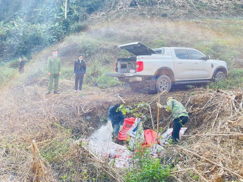 Sơn La tiêu hủy 500 kg sản phẩm động vật các loại không rõ nguồn gốc, xuất xứ