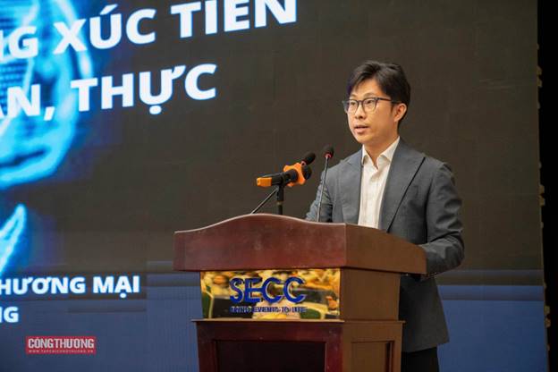 Ông Nguyễn Thành Dương, Phó trưởng Phòng Phát triển năng lực, Cục Xúc tiến thương mại, Bộ Công Thương tham luận về vai trò của xúc tiến thương mại số trong nâng cao giá trị ngành thực phẩm; Thương mại điện tử B2B - kênh mới để quảng bá và xây dựng thương hiệu thực phẩm Việt Nam; và Định hướng, sáng kiến hỗ trợ doanh nghiệp tham gia gian hàng quốc gia trực tuyến, nâng cao năng lực cạnh tranh và hội nhập thị trường toàn cầu