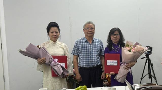 Ông Bùi Thanh Thủy - PCT kiêm TTK (giữa) trao quyết định bổ nhiệm Viện trưởng bà Nguyễn Thị Bình (Phải) và phó Viện Trưởng bà Nguyễn Thị Hoa (trái)