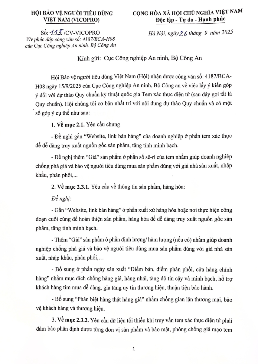 Ý KIẾN THAM GIA GÓP Ý CỦA HỘI BẢO VỆ NGƯỜI TIÊU DÙNG VIỆT NAM