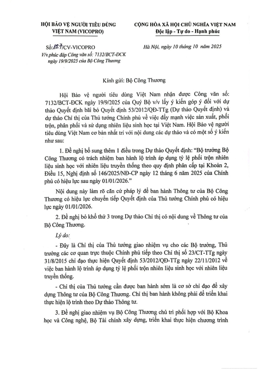 Bộ Công thương đề nghị các Bộ, cơ quan ngang Bộ, UBND các tỉnh, thành phố, các hiệp hội, doanh nghiệp liên quan đến sản xuất, kinh doanh nhiên liệu sinh học, xăng dầu, doanh nghiệp liên quan đến sản xuất, kinh doanh ô tô, xe máy và các đơn vị chức năng thuộc bộ Công Thương nghiên cứu, góp ý kiến đối với các dự thảo nói trên
