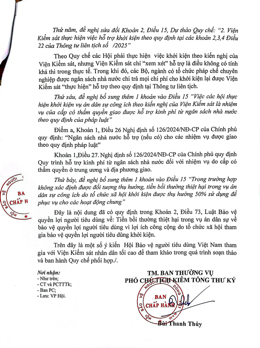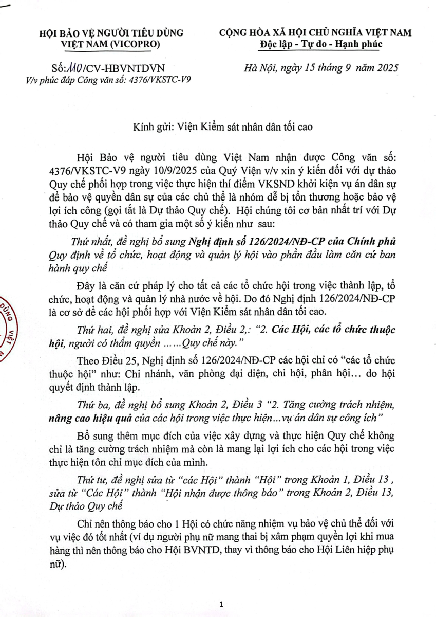 Ý KIẾN THAM GIA GÓP Ý CỦA HỘI BẢO VỆ NGƯỜI TIÊU DÙNG VIỆT NAM